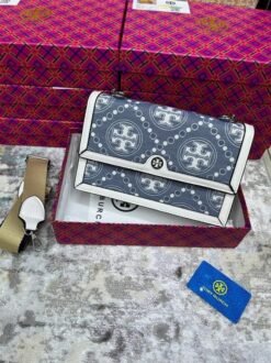 Tory Burch T Monogram Shoulder Bag With Adjustable Strap With OG Box & Dust Bag (White – 618)